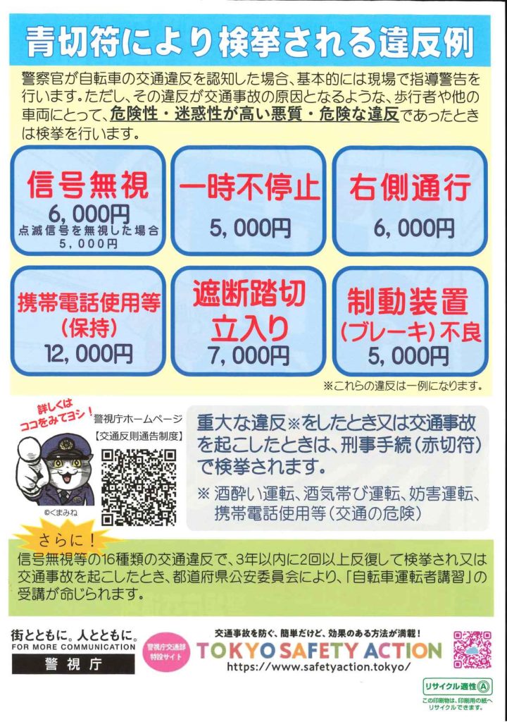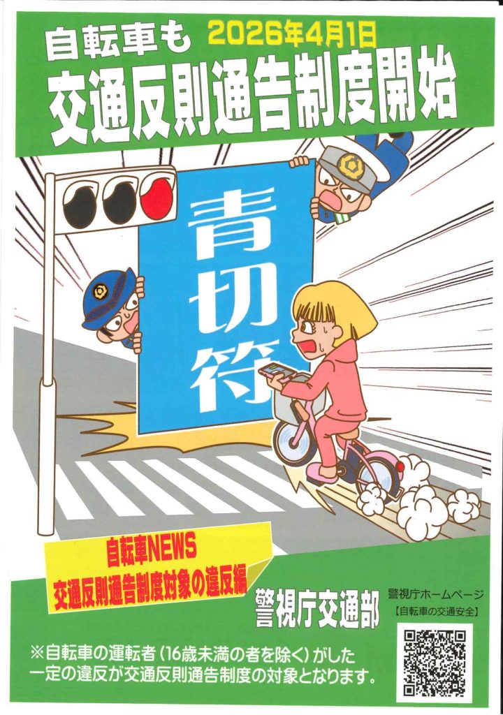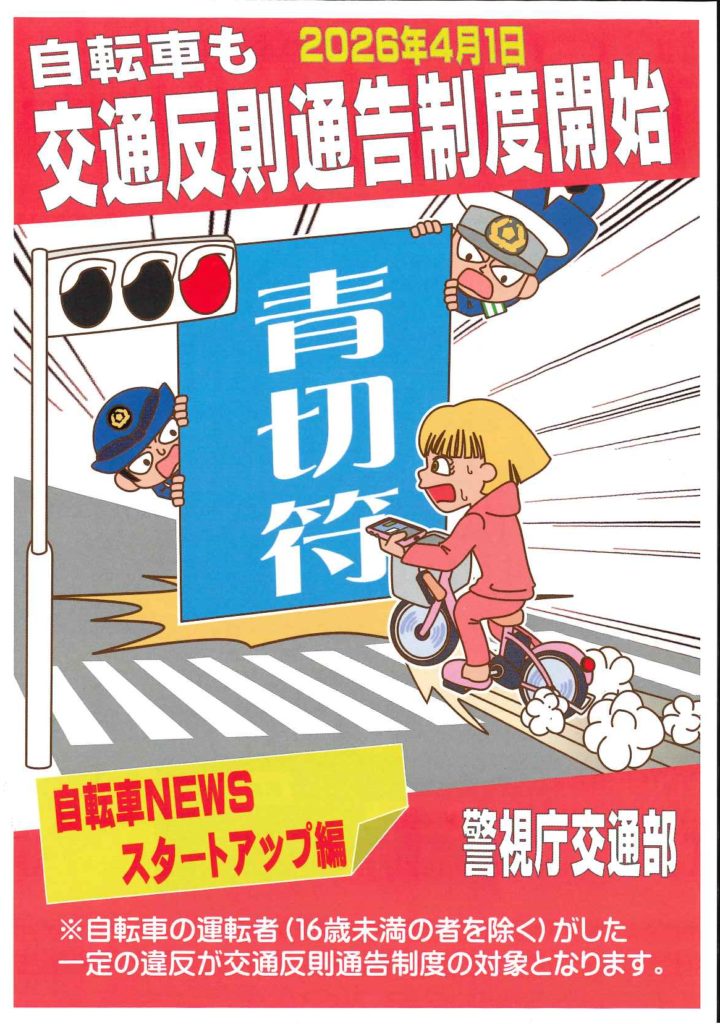 自転車も交通反則通告制度が令和8年4月1日より開始になります。